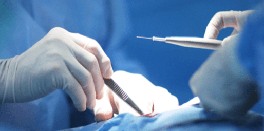 - Se utiliza Bisturi y Sutura
